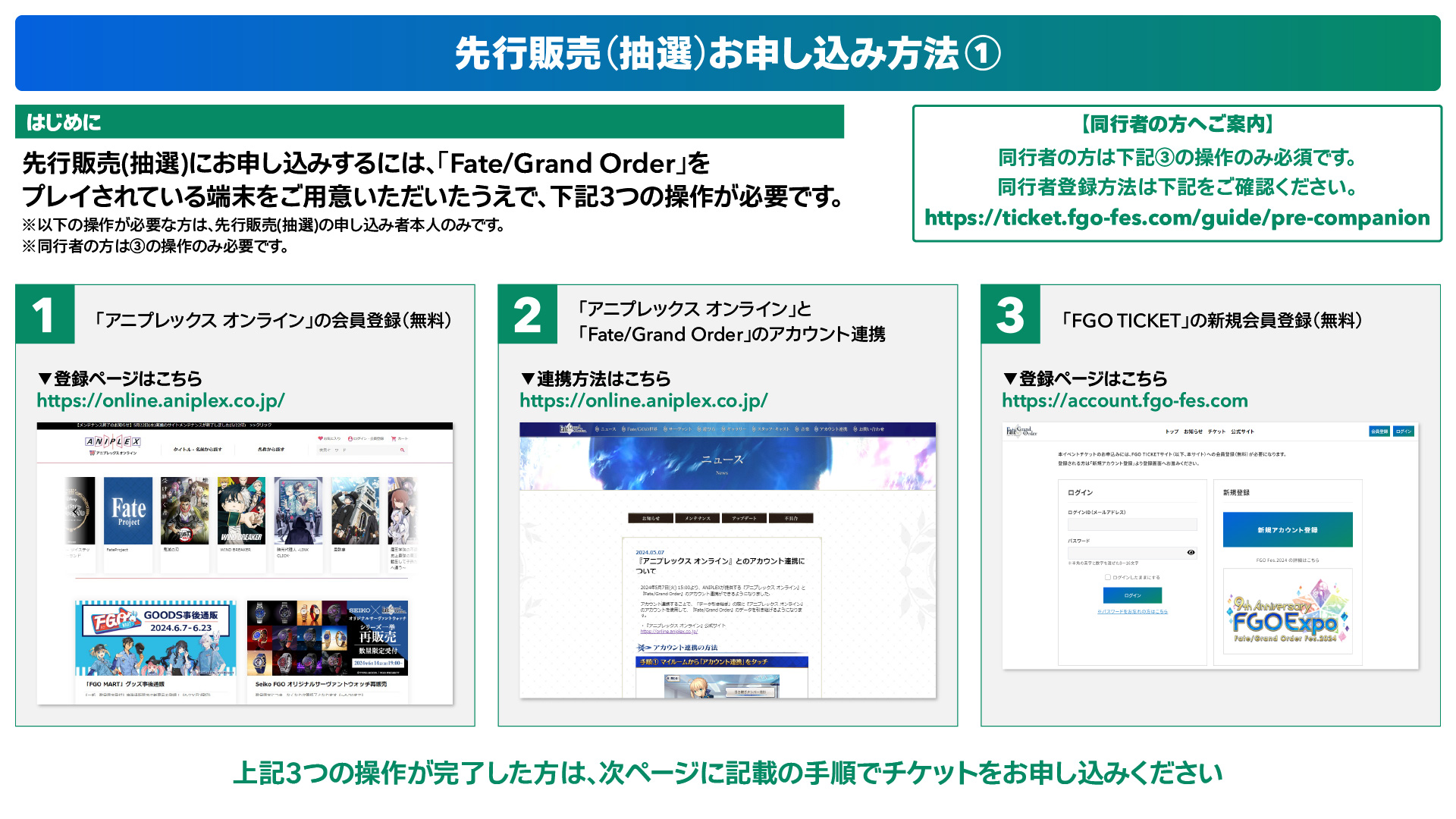 アカウント連携方法はコチラ - ※同行者となる方も「FGO TICKET」の新規会員登録が必要になります。